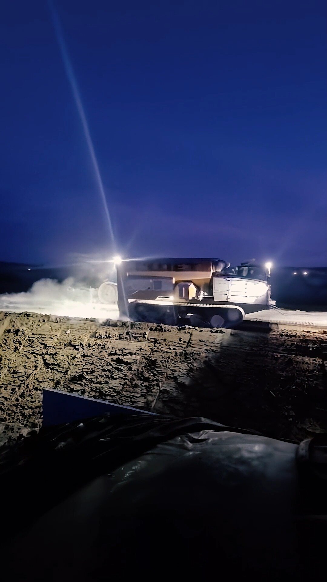 Another night, another layer locked in 🏗️ From excavation to stabilization, the implement-ready #PantherT12 can handle it all‼️ Spread lime, stabilize soil, and keep pushing when the ground tries to slow you down 💪 Credits: @cloetgebr.nv 🎥 #Prinoth #prinothcrawlercarriers