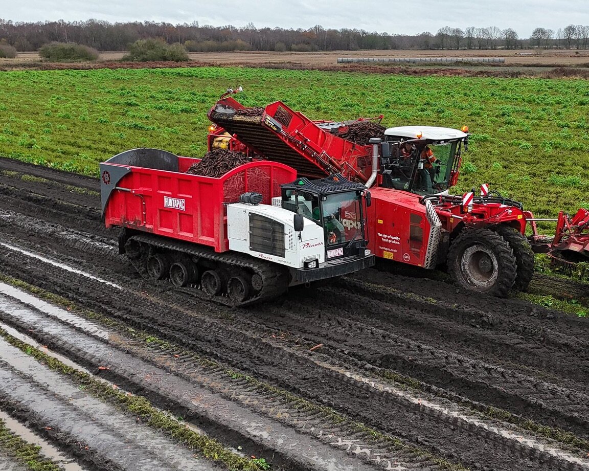 Wet day winner! 🌧️ 🥕 The low ground pressure #PantherT12, with its light footprint, keeps you harvesting through wet, muddy conditions. Protect your fields, conquer the mud, and deliver fresh produce every day‼️ Dealer: @bradleys_group 🤝 Credits: Huntapac Produce Ltd 📷 #Prinoth #prinothcrawlercarriers #agriculture #farming